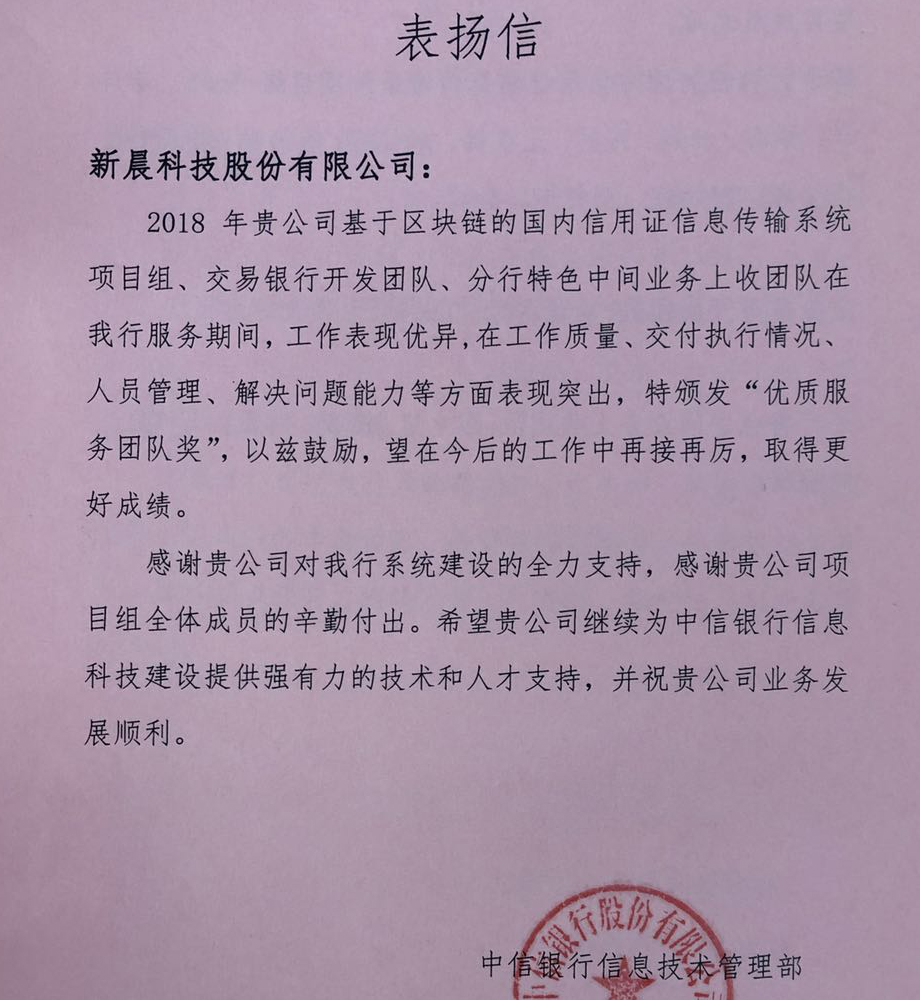 中信银行 优质服务团队奖